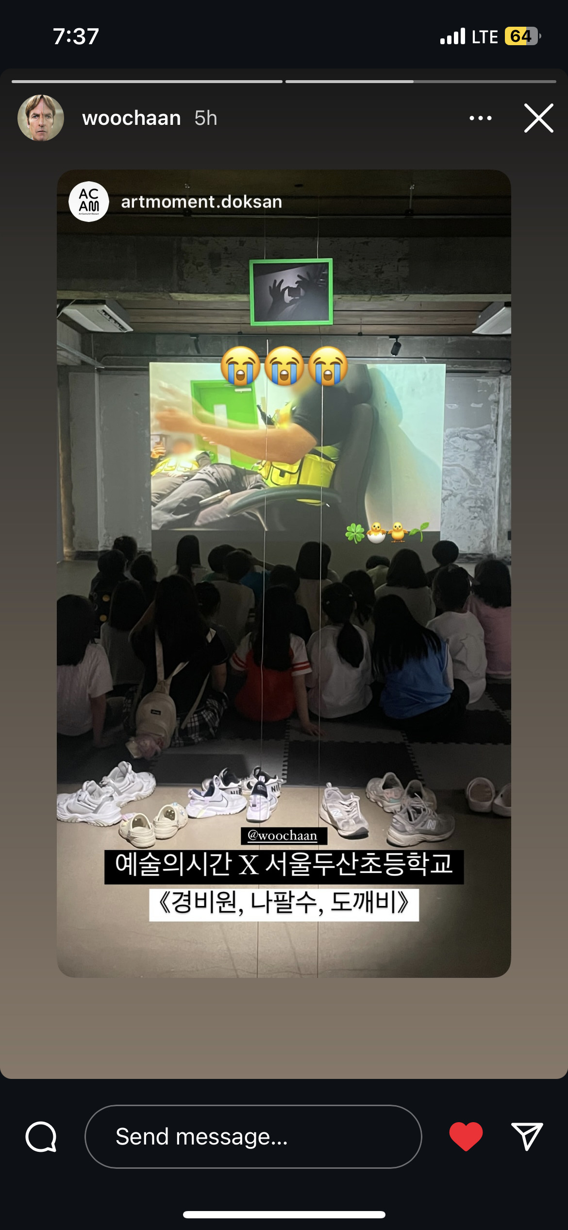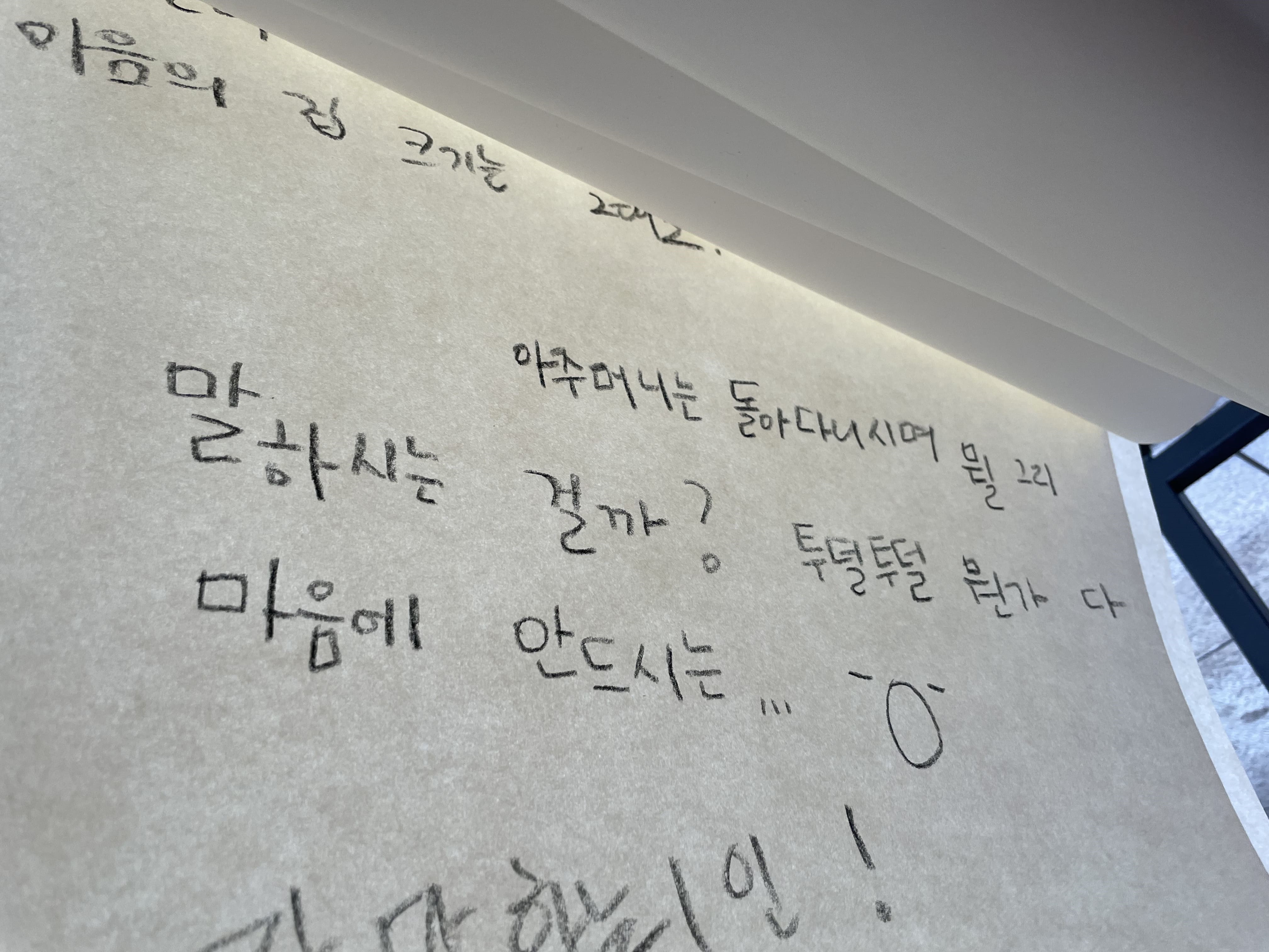 그래서 이 전시의 교육 프로그램을 기획할 때 관객 설정과 홍보는 어떻게 했고, 두산초등학교와의 협력 과정은 어땠는지 그 비하인드 스토리가 듣고 싶습니다. 이 전시가 아니라도 에듀케이터님께서 미술을 매개로 관객과 만나며 빚어냈던 다른 기억들도 궁금하고요.