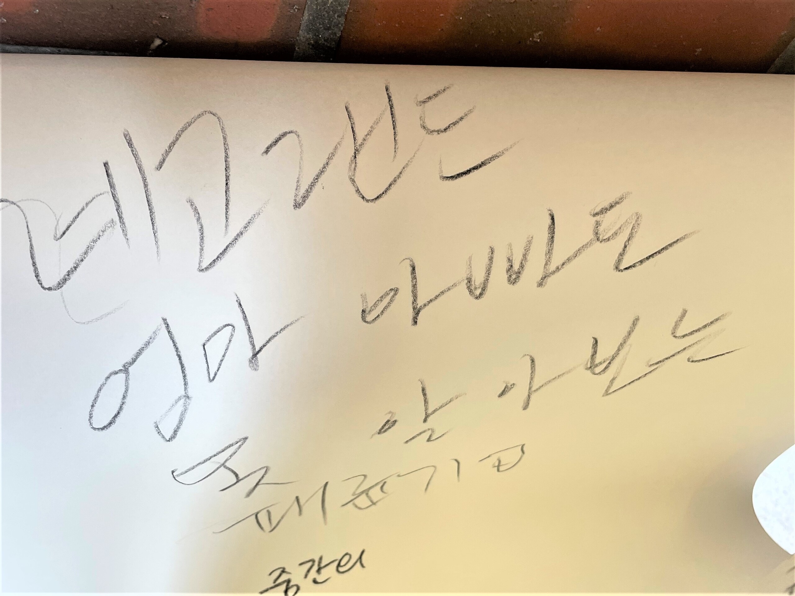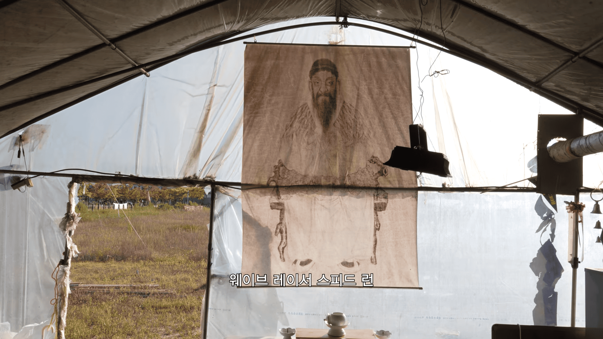 이를테면 "우오어아으이 · !"라는 이상한 기합을 외며 체조하거나, 시위대가 머무는 텐트인 비닐하우스 안에 단군의 초상화가 있었을 때 시위대 사람들의 순수함을 느낄 수 있었달까요? 자신의 이해를 위해 레고랜드를 뜯어먹으려는 사람이 아니라 레고랜드 부지에 묻힌 유적들을 정말 가치 있게 여기는 사람이라는 점이 느껴졌어요. 이 이후부터 아니꼬운 시선을 거두고 그들의 이야기에 귀 기울이기 시작했습니다.