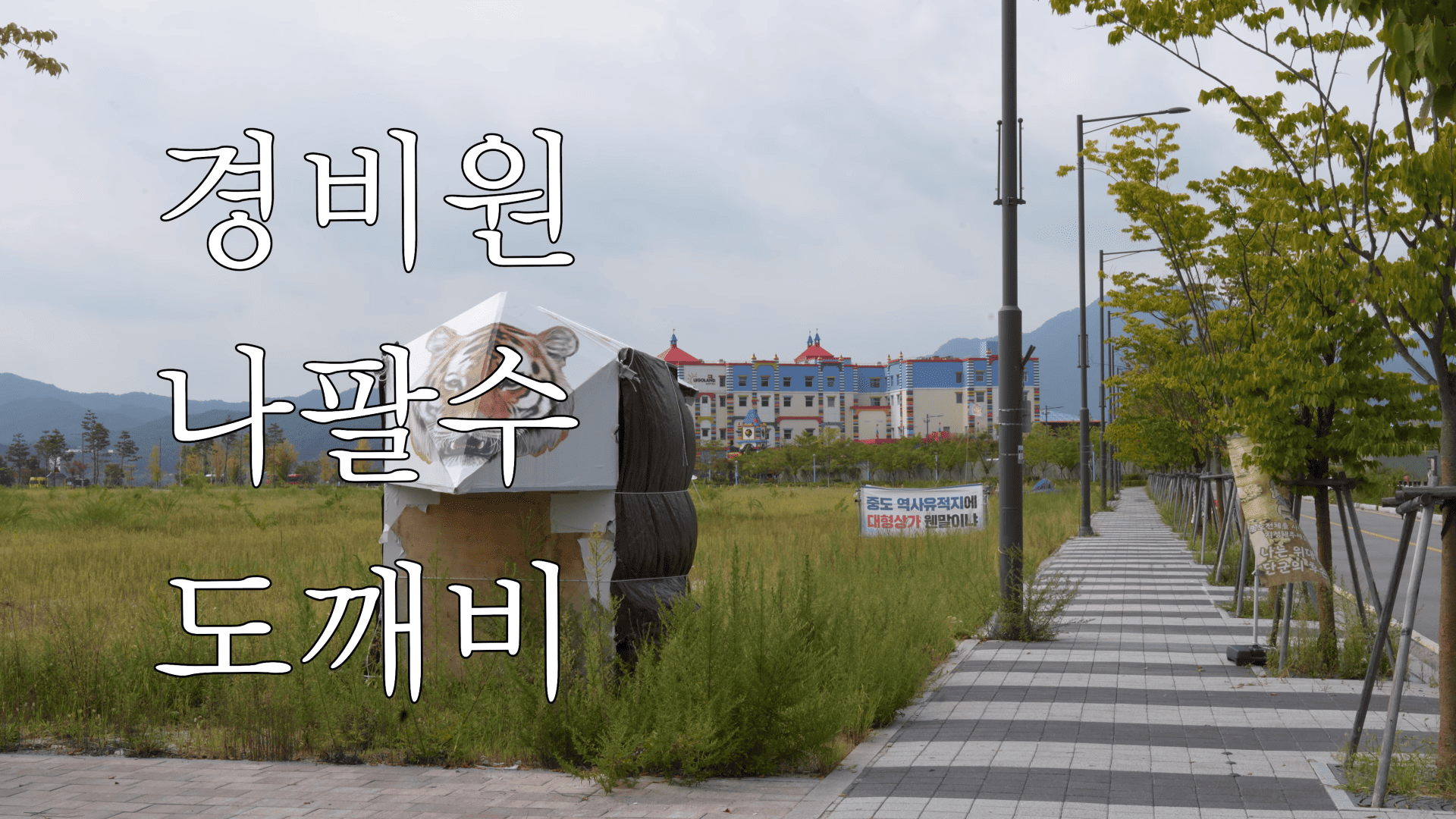 이 전시에서 도깨비의 특성이라 서술된 것들을 받아들였을 때, 저는 그게 작가의 자리일 수는 없다고 생각했어요. 도깨비의 자리에 있어야 할 것은 중도라는 땅 자체 혹은 그 땅을 관할하는 터주신(: 집터를 지키는 지신地神)이겠죠. 단군의 초상화를 걸어 놓고 제를 지낸다거나, 레고타워보다 더 높은 자리를 선점하기 위해 산속에 시위 깃발을 꽂는 시위대의 산수지리적 선택도, 그 의식이 중도의 터주신과 소통할 수 있는 언어이기 때문이라고 생각합니다.