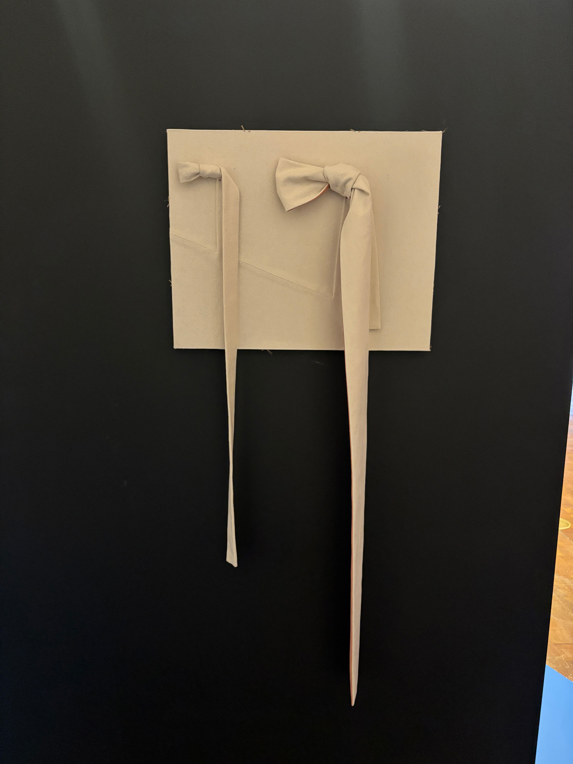 이주요: 관객들이 전시 공간에 들어갈 때 보통 선택하는 동선이나 움직이는 방식이 있지? 리본 방에서 김성환의 설치는 그 관성적인 움직임을 cancle 시켰어. 그저 벽만을 바라보게 하지 않고 고개를 쳐들도록 혹은 자신의 발밑을 보도록, 다양한 크기와 모양의 설치물을 통과해 작품에 이르도록 하게끔 미션을 주거든. 관객은 그 과정을 통해 이 공간 안에 조금 더 깊이 relate 되고 personal 해지지. 그 비일상적인 경험을 어떤 면에서는 ‘유예의 시간’이라고 부를 수도 있을 거야.