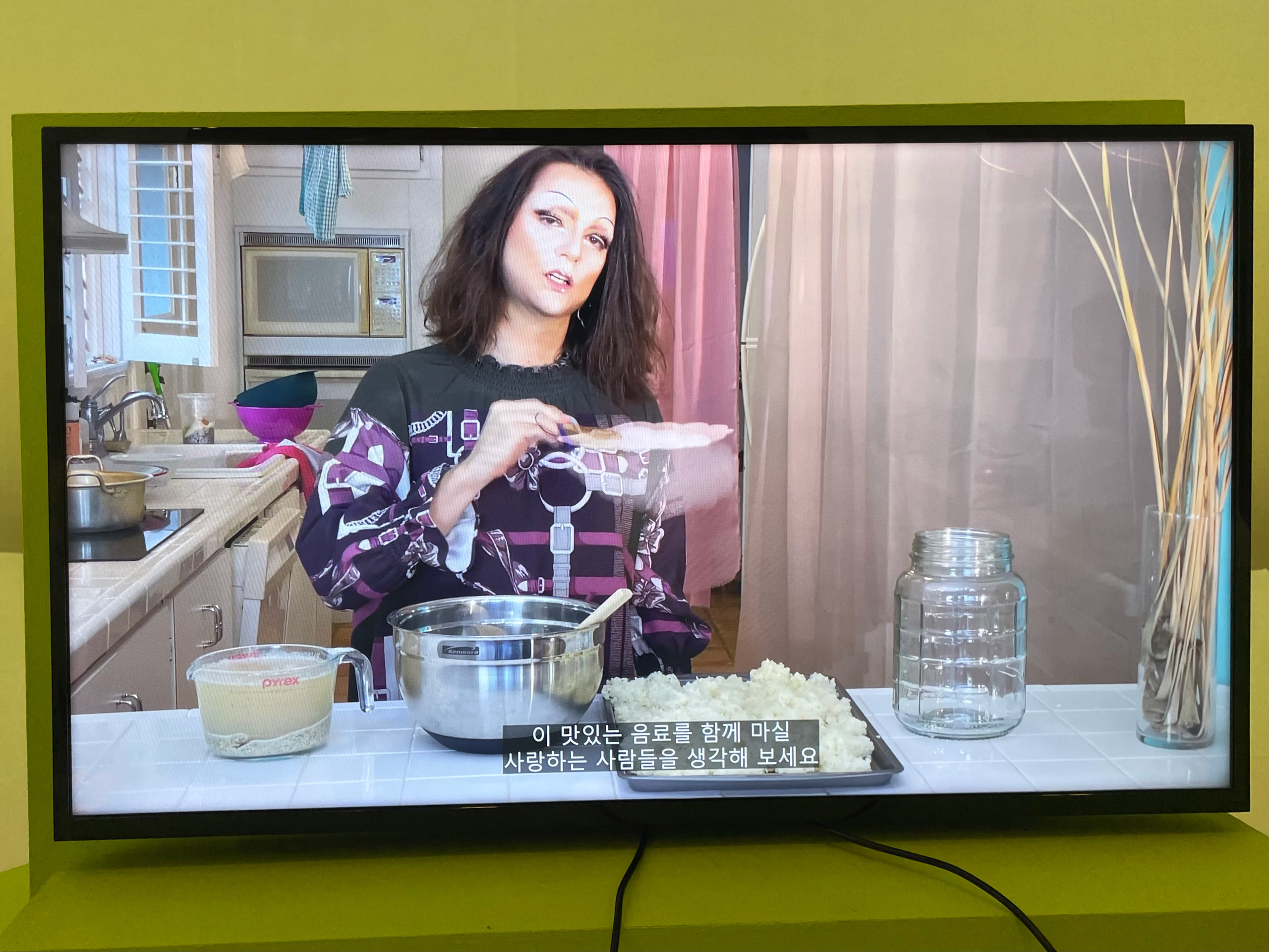재훈: Room 3의 출구 쪽에 (정말 뜬금없게도) 막걸리 레시피 전수 영상 <액츄얼리나의 막걸리 만들기>가 있었잖아요. 그 영상을 만든 작가 이름이 ‘액츄얼리나Actualina’라고 표기되어 있거든요. 저는 처음 봤을 때는 몰랐는데, ‘액츄얼리나’가 David라면서요?
