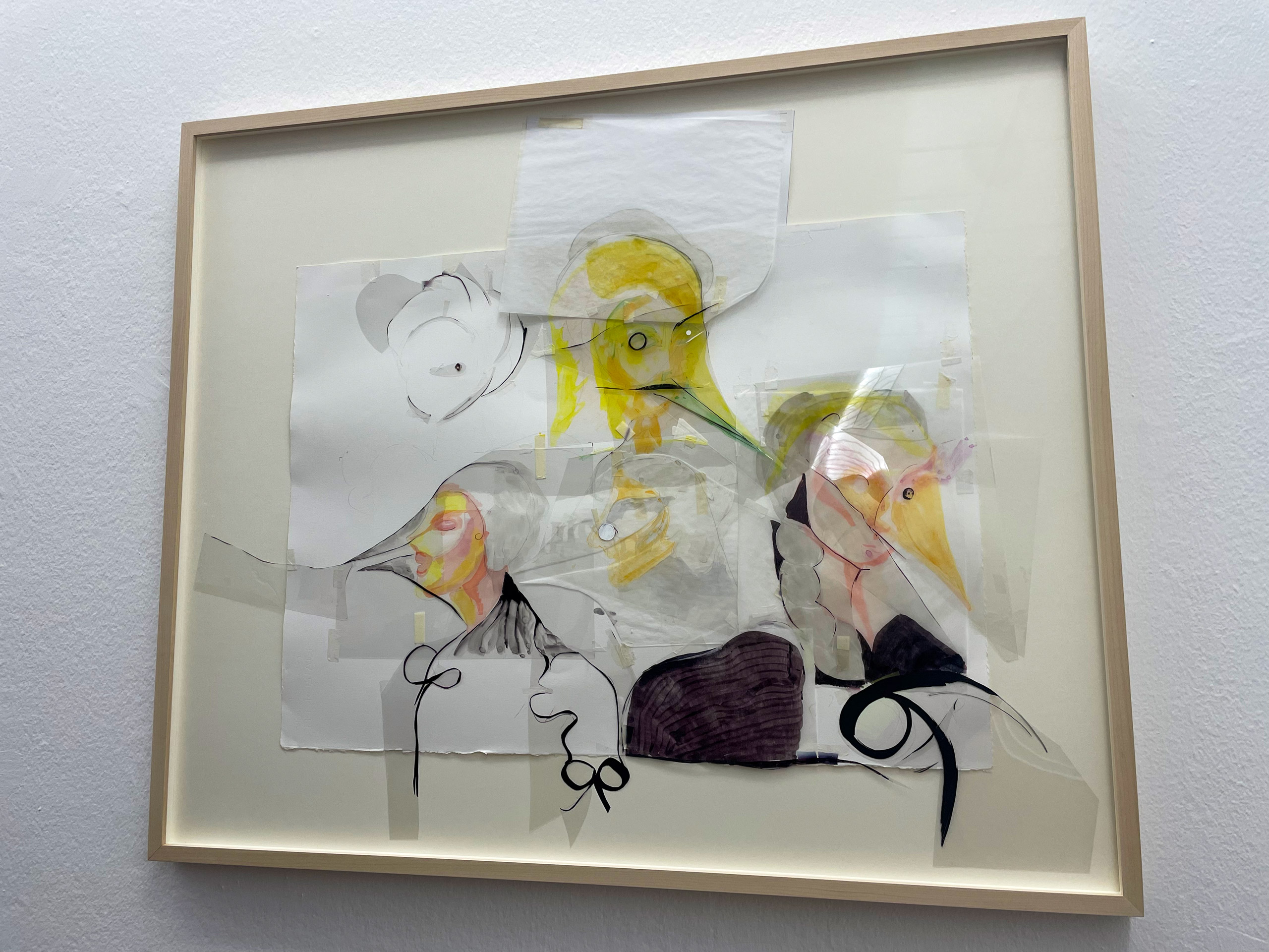 재훈: 얼마 전에 《밤의 기스》에서 찍었던 사진을 다시 봐봤는데요. 저희가 앞서 이야기 나눴던, 협업자와의 관계에서 느껴지는 친근함 같은 요소가 살아 있는 이번 전시에 비해 훨씬 안 캐주얼하면서 더 무섭고 (지민의 표현대로라면) 더 미학적이었거든요. Room 1에서 희한하다고 느낀 작품 중 하나가 <Queer bird faces>였는데, 이 작품은 《밤의 기스》에 절대 출품하지 않았겠다는 기분이 드는 거예요.