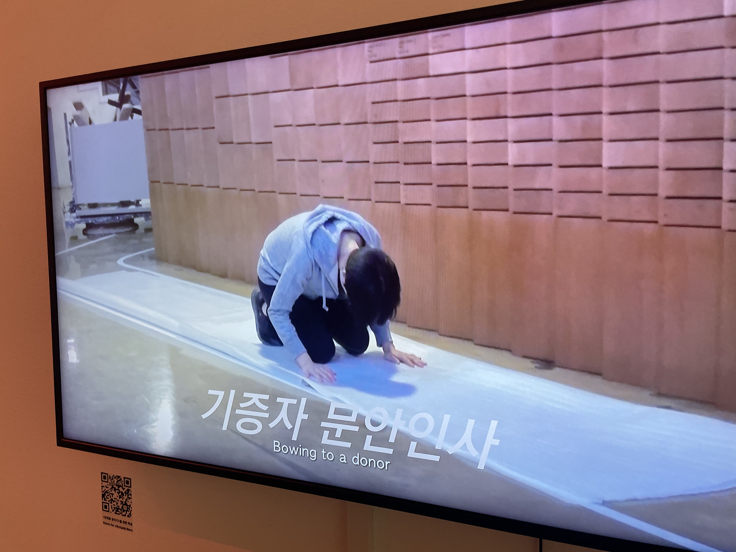재훈: <장애물 달리기>는 프리케리아트 미술 학부생 버전의 출발 드림팀을 보는 듯했어요. 작가가 스스로를 퍼포머로 삼아 ‘기증자에게 문안 인사드리기’와 같은 우스꽝스러운 미션을 수행하며 학교 건물을 누비는 모습이 미술가의 모습과 비슷해서 정말 웃기더라고요.