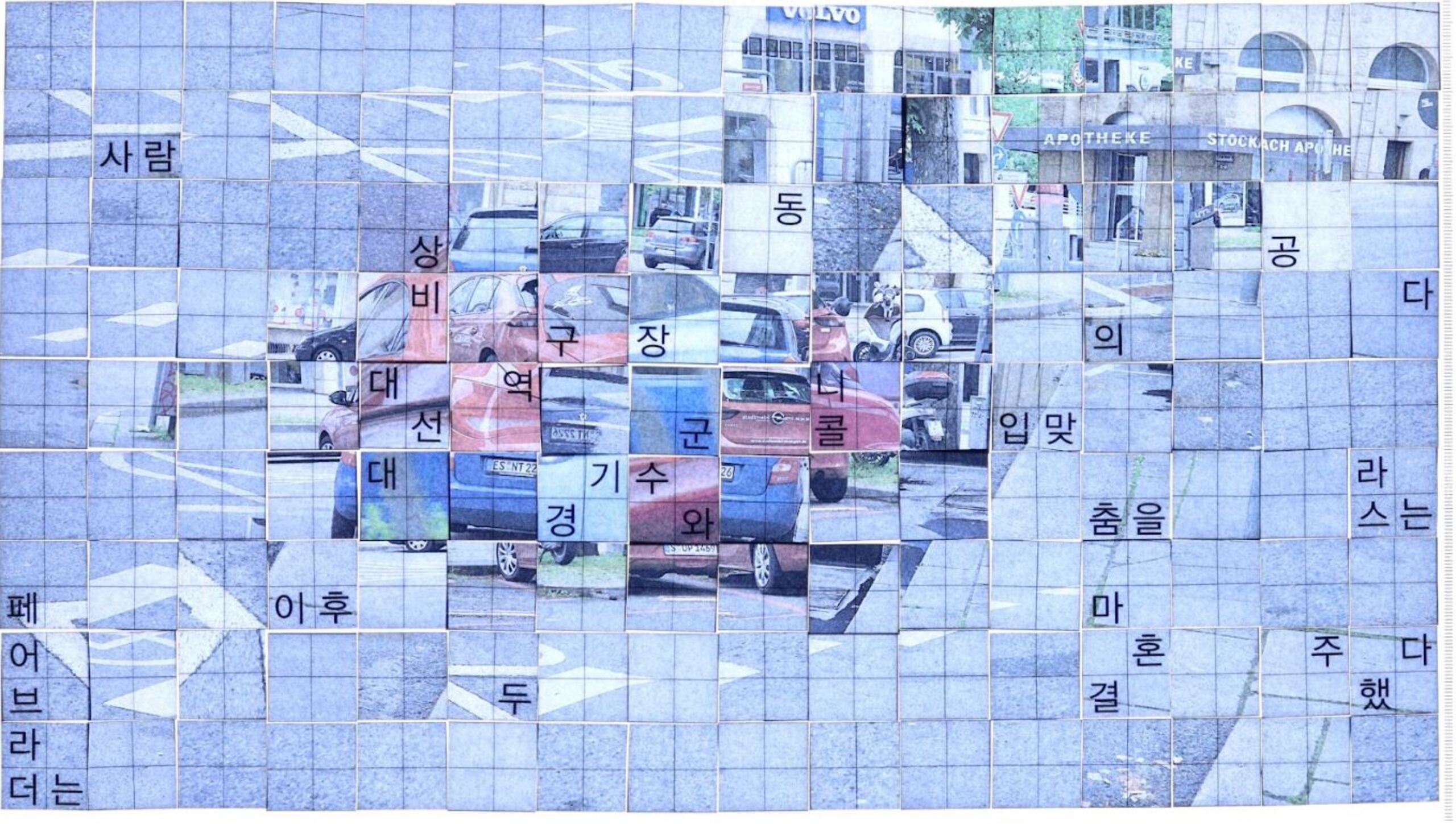 하지민 작가는 여러 장의 이미지를 격자 형태로 나눈 뒤 그 조각들을 뒤집으며 이미지를 만들어나가는 방법론을 ‘니콜라스’라는 이름을 사용하는 (혹은 사용한다고 여긴) 세 사람의 이야기를 매개 삼아 집중적으로 다뤄본 듯해요. 제가 봐왔던 작가의 전작들에서도 그 방법론이 등장하긴 했지만 중심축을 맡진 않았거든요.