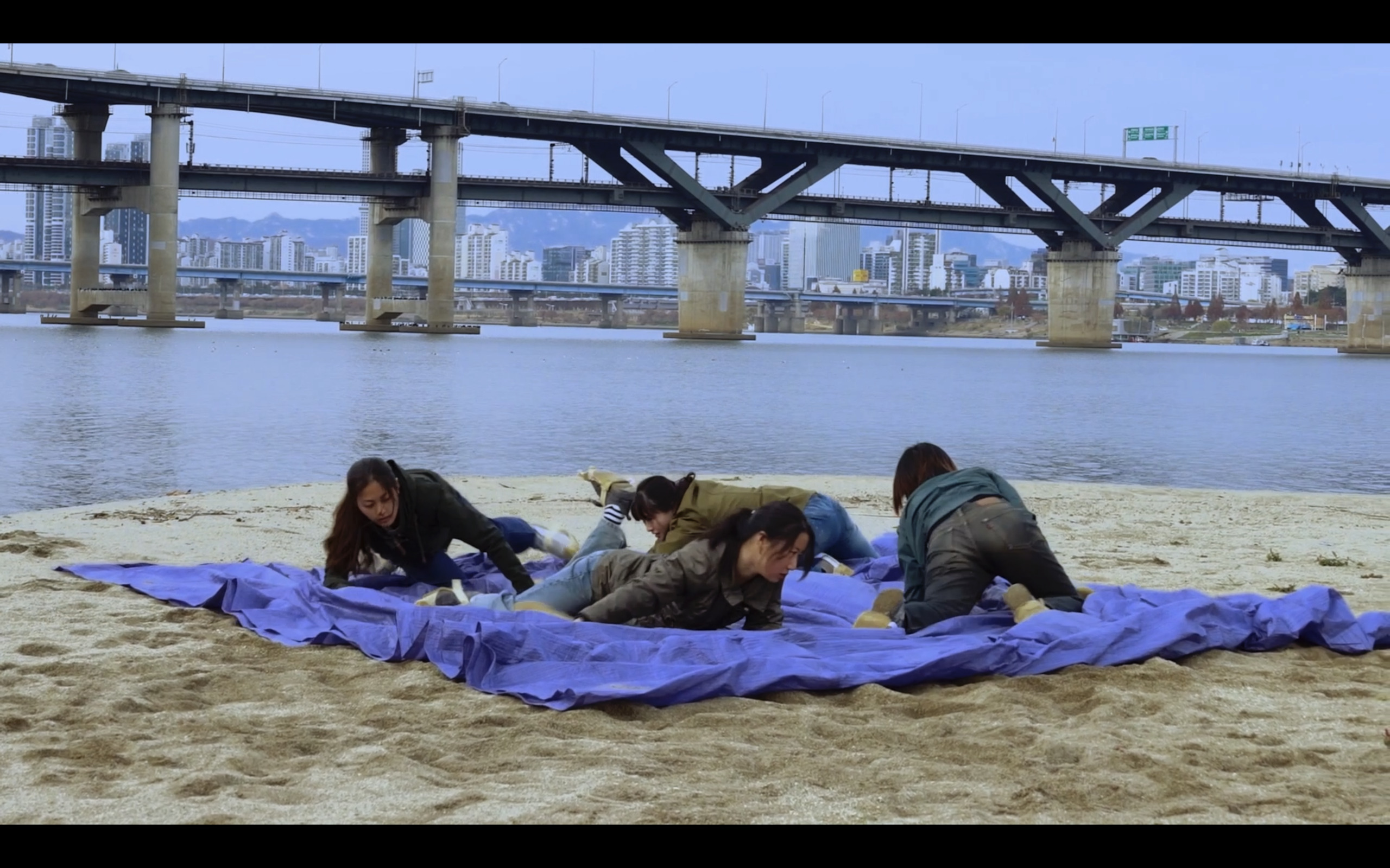 황아림: 작가의 전작인 <두꺼비 근로>에도 길거리에서 무언가를 운반하는 사람들이 나왔던 걸로 기억하는데, 야광의 작업이랑도 연결되는 부분이 있네요. 야광도 노동하는 신체를 작업 안에 들여오고 있잖아요.