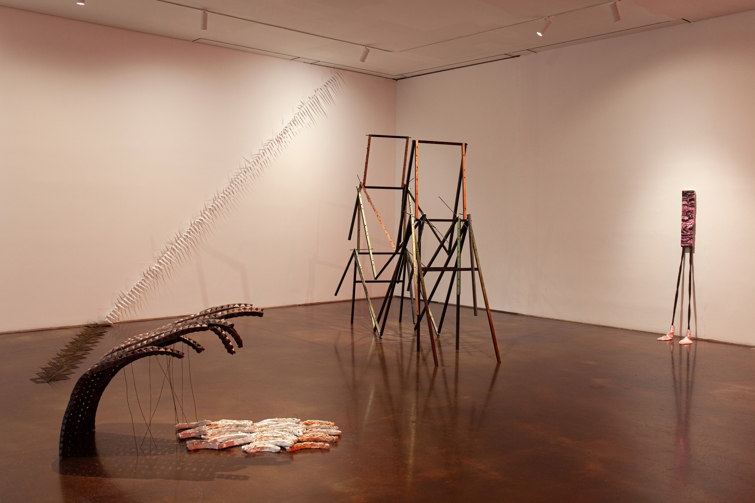 ‘이번 전시에서 ‘장소성’은 단순한 물리적 공간을 넘어, 사회적 맥락이 투영되고 각인되는 몸으로 확장되어 이해됩니다.’라는 소갯말이나 국제갤러리 K2와 (투게더)(투게더)를 선정한 이유가 잘 납득이 안 됐습니다. 공간 선정은 그저 지금 시기에 전시할 수 있는 공간을 기준으로 이루어진 듯보였거든요. 신체에 관한 이야기도 참여자들 작업에 당연히 내재되어 있는 것으로 여겨 생각하고 있지 않았는데 방금 야광과 하지민에 대한 아림님의 말씀을 들어보니까 갑자기 설득이 되네요.