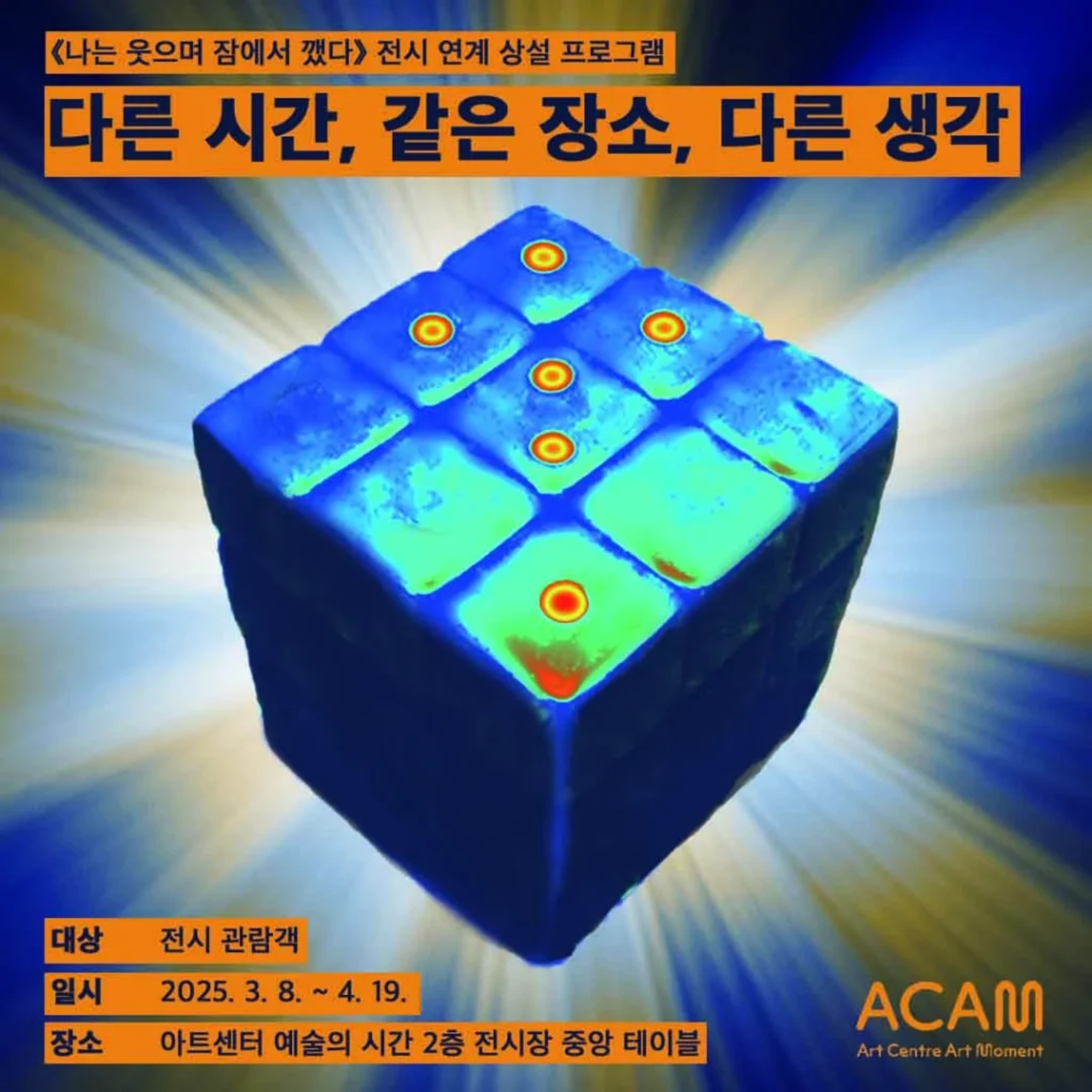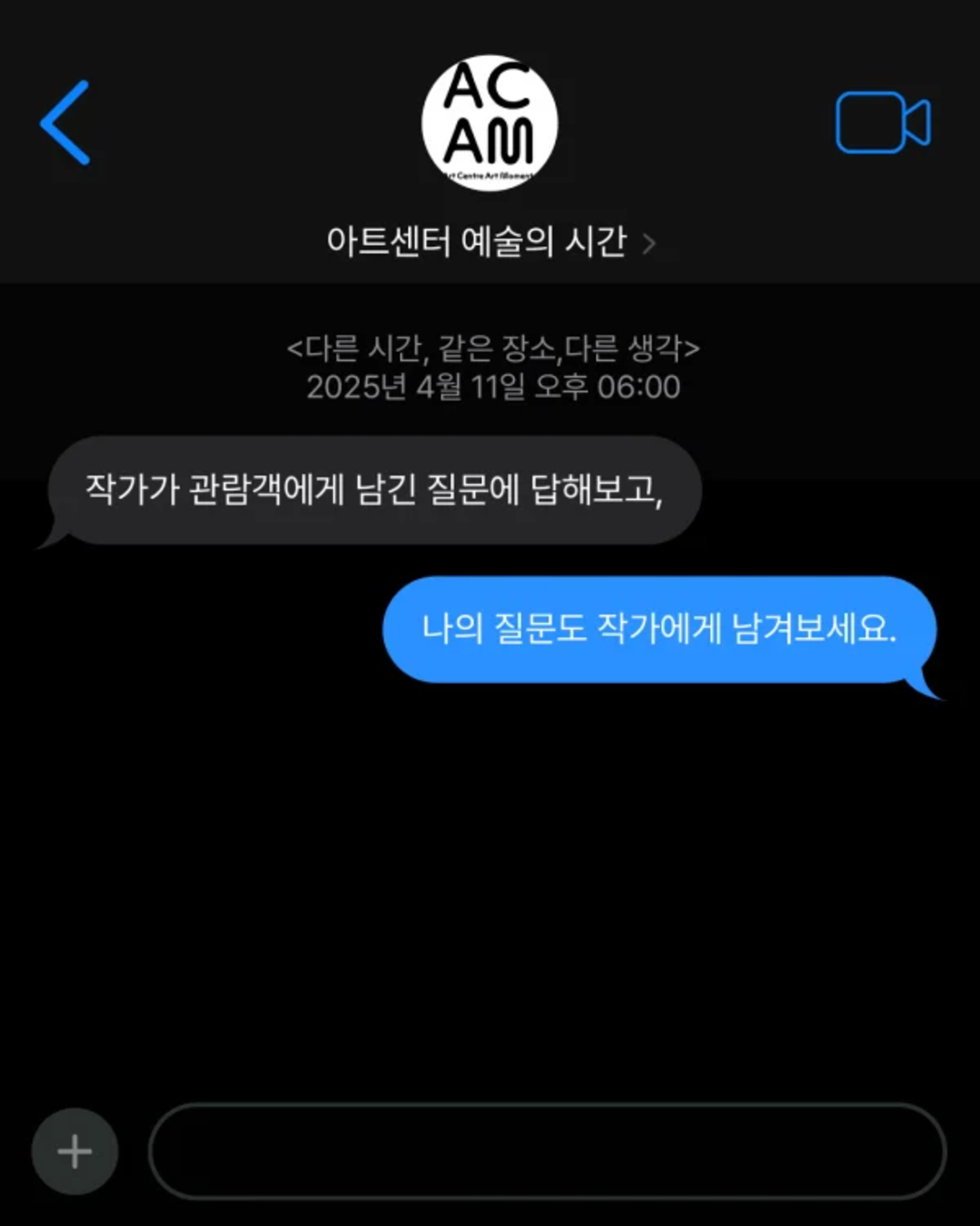 아트센터 예술의 시간은 《나는 웃으며 잠에서 깼다》 전시를 감상하고 떠오른 단편적인 생각을 적어보는 전시 연계 프로그램을 진행합니다. 작가와 관람객 사이를 질문으로 연결하며 감상을 공유하는 프로그램입니다. 작가가 관람객에게 남긴 질문에 답해보고, 나의 질문도 작가에게 남겨봅니다.